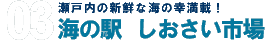 とれたての魚を買って、食べて、漁業体験や魚のつかみどりまでできる、海の幸満喫のスポット。地のものを中心に新鮮な魚が並ぶ「魚稚」。気さくな大将におすすめを聞くのがいいネタゲットの近道。「くいどうらく」はバーベキュー(¥1800)はじめ、天ぷら、わっぱ汁、イカスミのパエリヤ…と豪快な海鮮料理が満載。夏は穴子、鱧、タコが旬、冬は名物の牡蠣が食べ頃に! |