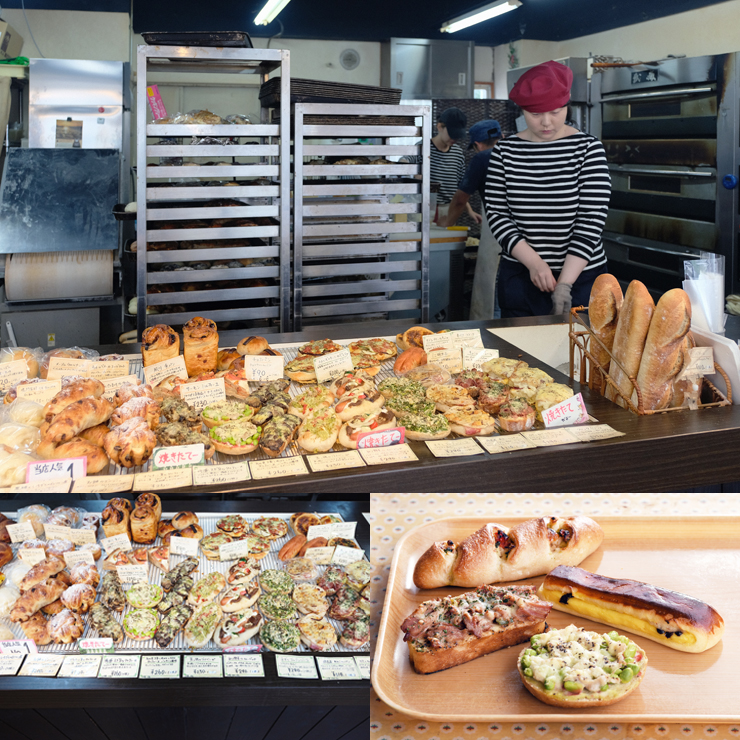元フレンチ・イタリアンのシェフがオーナーのブーランジェリーは、パンをお皿に見立てたような見目麗しい惣菜パンがズラリ。菓子パンや食パンなども含め約120種類が毎日ラインナップ、さらに各種6~8個を5、6回に分けて焼くというのだから、いつ行っても焼きたてアツアツのパンに出合えます。200円未満のパンも多く、「このクオリティでこの価格!」なのも人気の秘密。この時期、秋食材を使った旬なパンも登場予定。